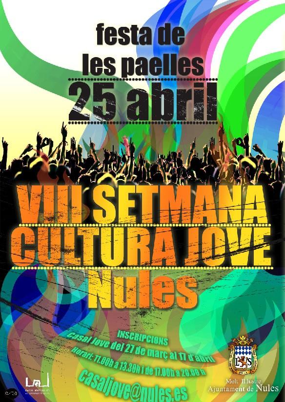 El Ayuntamiento de Nules ya está ultimando la programación de la Setmana Cultura Jove, una cita plenamente consolidada después de 8 años, que se desarrollará entre los días 17 y 26 de abril, y de la que destaca especialmente la celebración del día de las paellas, el sábado 25, para el que el consistorio espera la participación de unas 7.000 personas, después de que el año pasado se superaran los 6.400 asistentes.