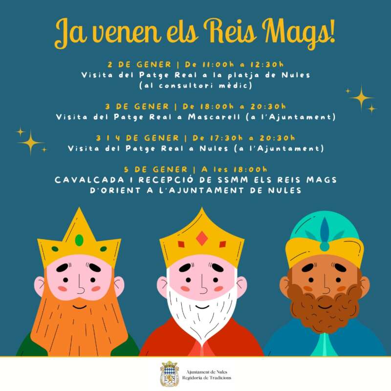Cal recordar que, la Cavalcada de Reis de Nules se celebrarà diumenge, 5 de gener, a les 18.00 hores, i la de Mascarell a les 19.30 hores.