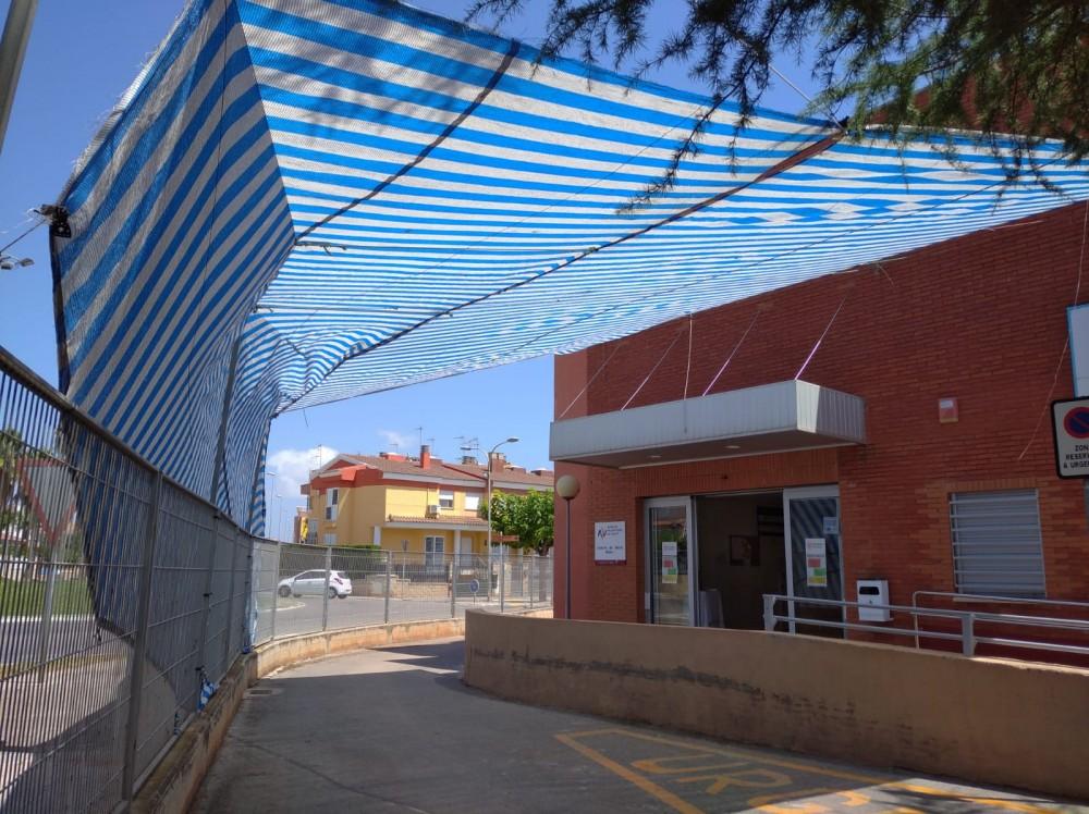L’Ajuntament de Nules, mitjançant la brigada municipal, ha instal·lat uns tendals en els exteriors del centre de salut per a que les persones usuàries tinguen ombra mentre esperen l’entrada a la consulta.