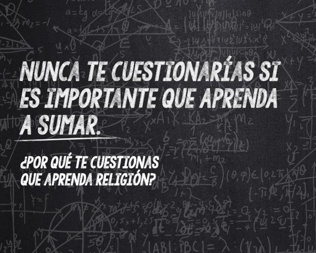 En la campaña se exponen las razones por las cuales una educación que incluye la formación religiosa es una educación más completa para niños y jóvenes. Con un lenguaje incisivo se dice: "Nunca te cuestionarías si es importante que aprenda a sumar o a escribir. ¿Porqué te cuestionas que aprenda religión?". La religión es, en efecto, una asignatura fundamental porque la dimensión religiosa forma parte de la realidad del ser humano, y por tanto es una necesidad y un derecho que los alumnos puedan desarrollarla y vivirla adecuadamente y que los padres puedan elegirla para sus hijos.