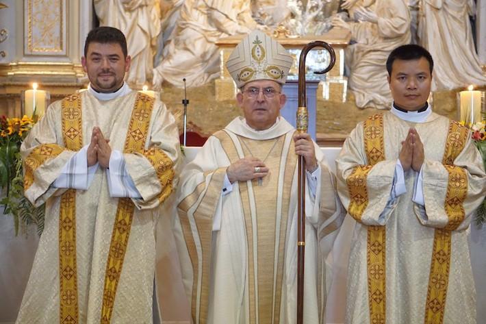 El Obispo de la Diócesis Segorbe-Castellón, Casimiro López, ha ordenado a dos nuevos diáconos: David Escoín Rubio y Francisco Javier Phuc Pham Van, de los seminarios Mater Dei y Redemptoris Mater respectivamente. En la celebración, que ha tenido lugar en la parroquia de la Asunción de Onda, han participado unas 600 personas y medio centenar de sacerdotes, que han concelebrado junto al Obispo.