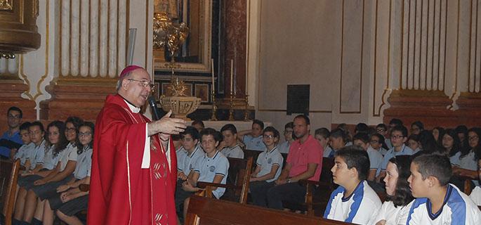 Los alumnos de los colegios diocesanos del Seminario y la Milagrosa de Segorbe han llenado esta mañana la Catedral para participar en la misa de inicio de curso presidida por Mons. Casimiro López Llorente, que ha animado a que los centros sean verdaderas comunidades docentes y evangelizadoras. De los estudiantes, ha dicho que son lo que da razón de ser a la institución, y de los profesores, que deben ser educadores que enseñen con el ejemplo. El Obispo también ha aprovechado la presencia de los sacerdotes del arciprestazgo, que a continuación se encontraban con él, para pedirles colaboración con la escuela y la familia.