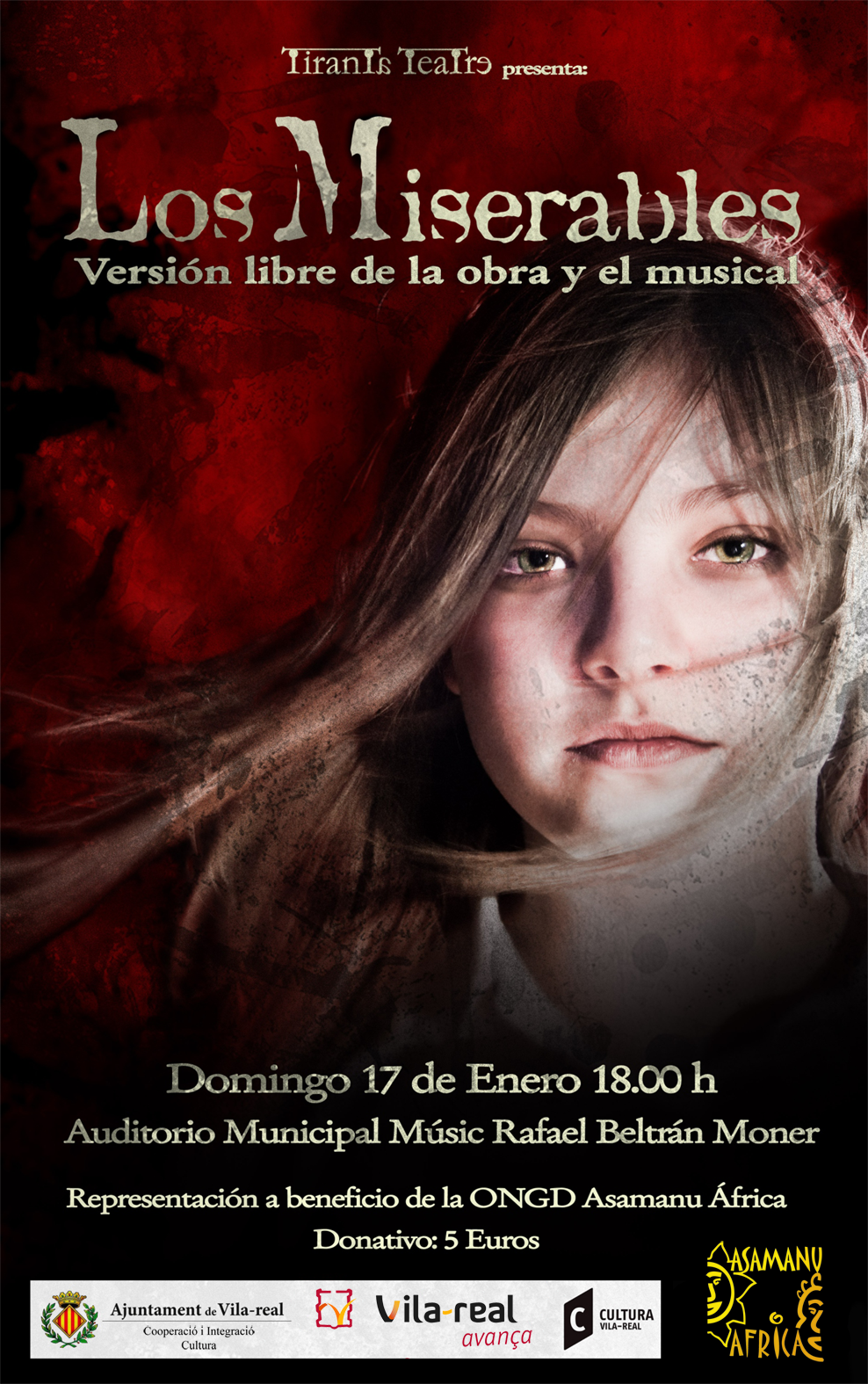 El Auditori acoge este domingo, a las 18.00 horas, la representación de la obra Los Miserables con fines benéficos a cargo de la compañía Tirante Teatro, que ofrecerá una versión libre de la obra y el musical. Las concejalías de Cultura y Cooperación colaboran con la iniciativa, cuya recaudación irá destinada a beneficio de la ONG Asamanu África, entidad que desarrolla su trabajo en Senegal.
