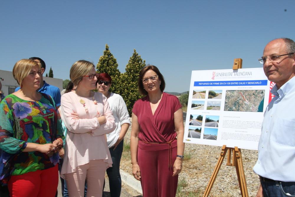 Así se ha manifestado durante la visita a las obras de seguridad vial que la Generalitat ha llevando a cabo en la CV-135, entre los municipios de Càlig y Benicarló, y donde se han invertido 675.000 euros. Salvador ha estado acompañada por el director general de Obras Públicas, Transportes y Movilidad, Carlos Domingo, y por las alcaldesas de Càlig y Benicarló, Ernestina Borrás y Rosario Miralles, respectivamente, así como por diputados provinciales y los alcaldes de la comarca.