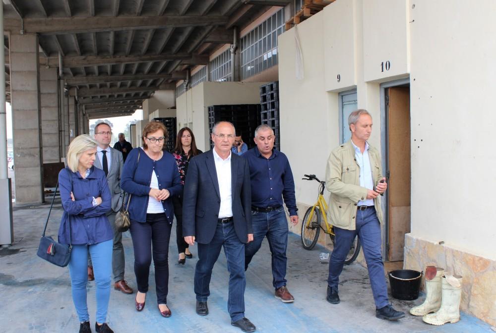 El director general d'Obres Públiques de la Generalitat, Carlos Domingo, visita al costat dels representants municipals uns treballs en els quals ja s'ha reforçat bona part del moll de càrrega