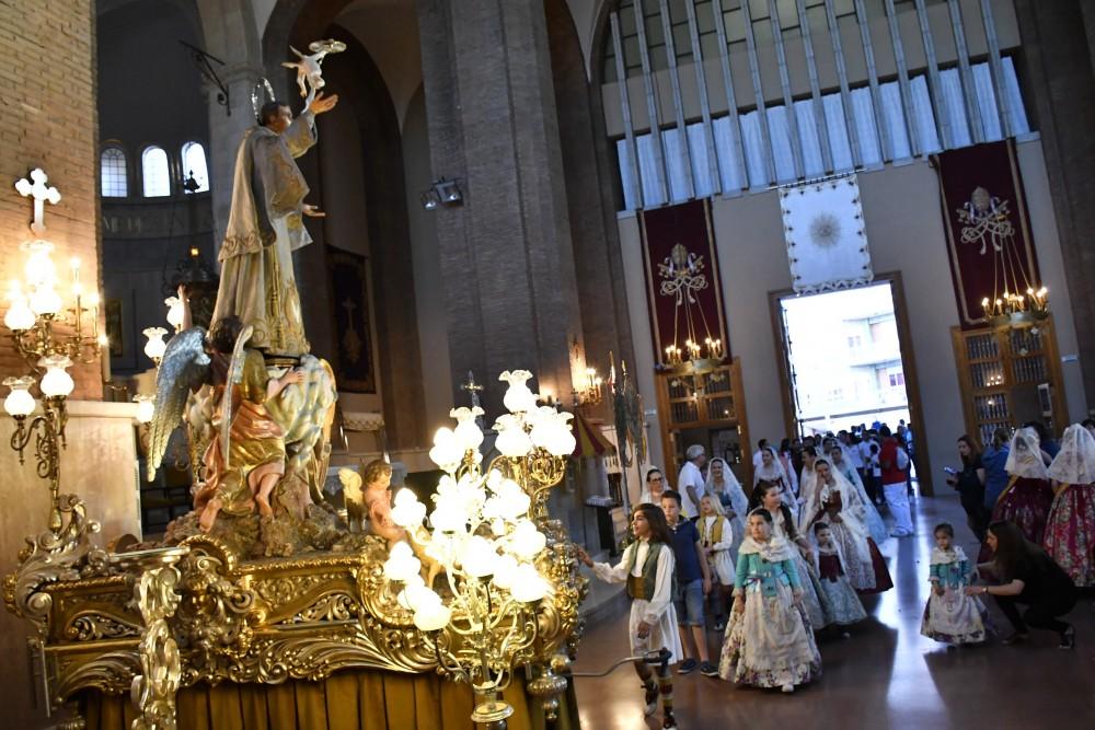 A les 18.15 s’han reunit a l’encreuament del carrer de la Cova Santa i la plaça Major  penyes, entitats, veïns i veïnes per a participar en l’ofrena de flors. I a les 18:30 ha arrancat amb la participació de la corporació municipal, encapçalada per l'alcalde, José Benlloch, amb tapís floral a sant Pasqual. L’acte han comptat amb l'assistència de nombroses entitats ciutadanes, penyes, veïns i veïnes, que han fet el recorregut des de la plaça Major fins la plaça de sant Pasqual per a donar el seu ram. Tot seguit ha tingut lloc la tradicional foguera.