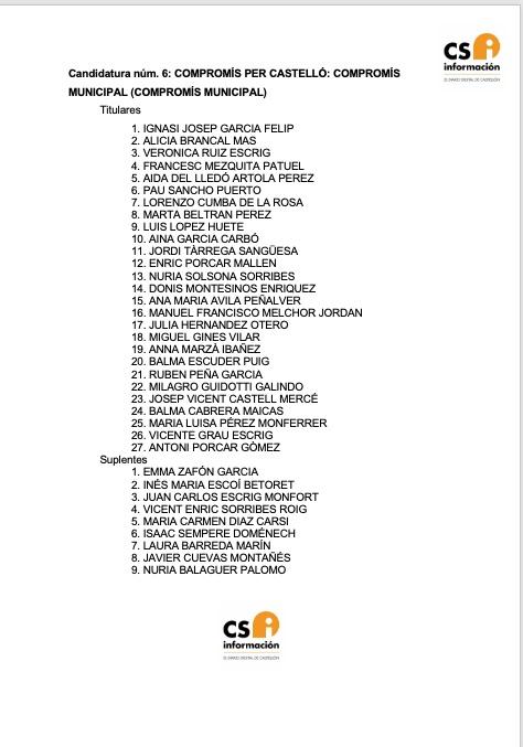 6: Compromís Per Castelló: Compromís Municipal (Compromís Municipal), liderada por Ignasi Josep Garcia Felip