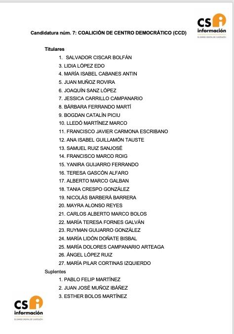 7: Coalición De Centro Democrático (CCD), liderada por Salvador Ciscar Bolfán.