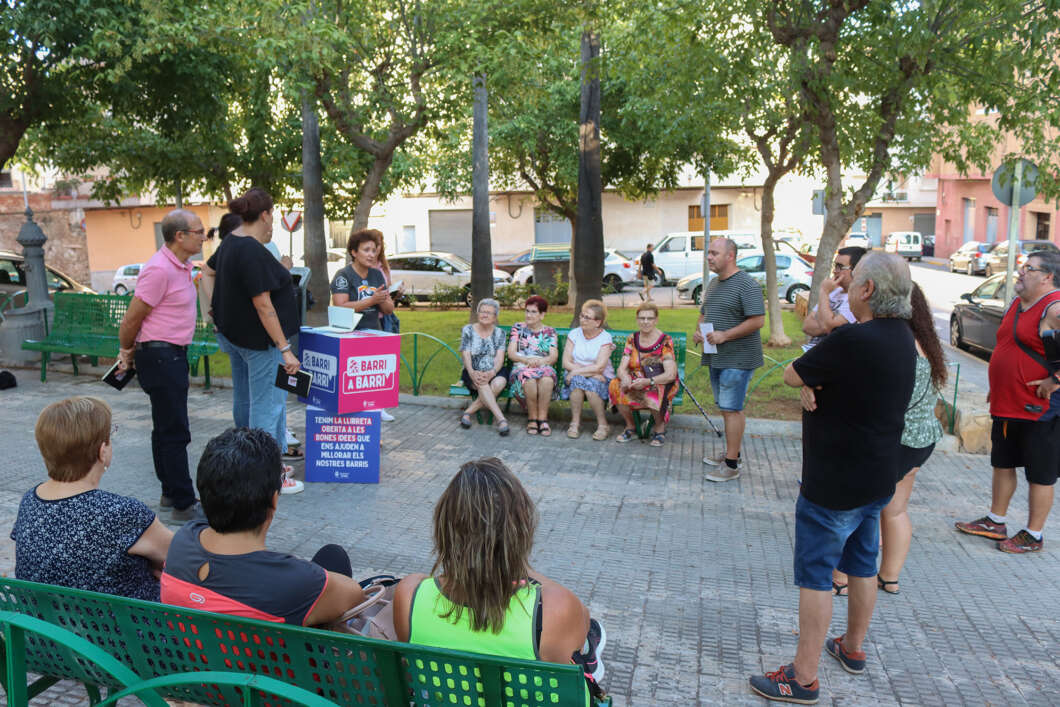 En una renovada campaña de escucha activa, la alcaldesa de Onda, Carmina Ballester, ha vuelto a sacar su despacho a pie de calle para atender las demandas de los vecinos y apuntar, libreta en mano, todas sus propuestas e ideas. Junto a la concejala de Barrios, Marta Villanueva, y el resto de miembros del equipo, ha acudido a una nueva edición de la campaña de reuniones participativas 'Barri a Barri', que se ha celebrado en los barrios de la Morería y Villarreal y Adyacentes.
