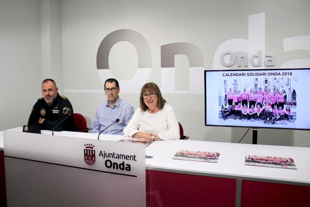 La regidora de la Policia Local de l'Ajuntament d'Onda, Mari Carmen Aguilella, ha presentat aquest matí juntament amb l'Intendent Principal Cap de la Policia Local, Miguel Ángel Izquierdo; i el president del club Adaponda, Ramón Felip; el nou calendari solidari local per 2018. Els almanacs podran adquirir-se des d'avui a través del club esportiu Adaponda i tindran un preu simbòlic de 3 euros.
