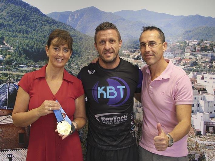 El concejal de Deportes del Ayuntamiento de Onda, Francisco Chalmeta, y la tiente de alcalde del Área de Promoción Cultural y Servicios a la Ciudadanía, Encarna Ribes, han recibido esta misma mañana al ondense Juan García, al que han felicitado por proclamarse Campeón de España Brazilian Jiu Jitsu.