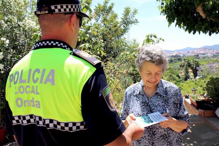 Por su parte, el Intendente Principal Jefe de la Policía Local de Onda, Miguel Ángel Izquierdo, ha explicado que agentes de la Policía Local, patrullas de la sección ecológica rural y miembros de Protección Civil, trabajan de forma conjunta repartiendo un díptico informativo que incluye la Normativa de Prevención la Generalitat Valenciana para la prevención de los incensos forestales y detalla recomendaciones específicas para que los propietarios de las casas las apliquen en sus parcelas. “Los dípticos se están distribuyendo por zonas”, ha afirmado Izquierdo, quien ha explicado que “mientras que los miembros de Protección Civil se encargan de las principales urbanizaciones donde se concentran más vecinos, las patrullas de la sección ecológica rural se centran en el resto del término y en las casetas aisladas”. Además, incluido en la campaña de prevención de incendios, Izquierdo ha destacado que “realizan una vigilancia continuada de las zonas recreativas, especialmente en fines de semana y fechas señaladas por la especial afluencia de usuarios y las altas temperaturas, y en el entorno agrícola se sigue con especial atención la prohibición de quemas hasta finales de septiembre”.