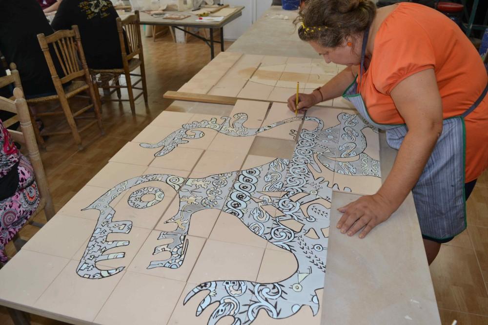 El resultado ha sido un mural con tres figuras que representan los guardianes de la cerámica que se instalará en un espacio reservado en la zona del aparcamiento del antiguo cine Paraíso que da acceso al castillo de Onda.
