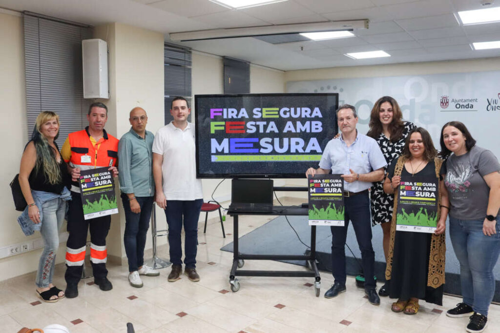 El Ayuntamiento de Onda, a través de las áreas de Servicios Sociales, Igualdad y Fiestas, ha presentado esta tarde la campaña 'Fira Segura, Festa amb Mesura' que persigue el objetivo de concienciar a los ondenses y visitantes, especialmente entre los jóvenes, sobre la violencia de género y el consumo responsable de alcohol durante la semana de fiestas patronales.