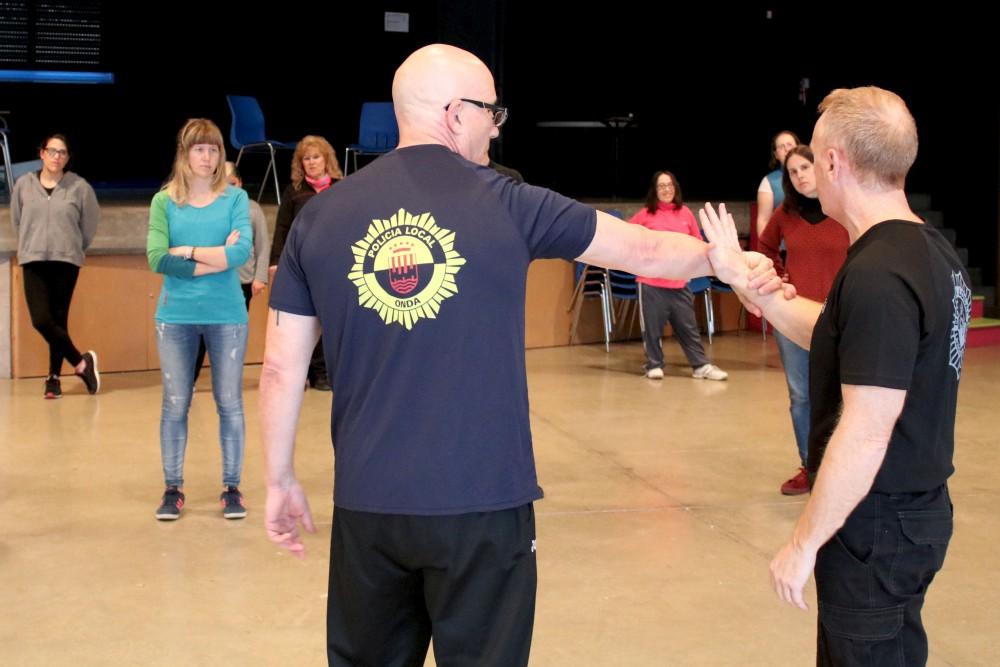 El Casal Jove d'Onda ha albergat aquesta vesprada la primera sessió del curs ‘Autoprotecció i defensa personal per a dones’. Un nodrit grup de dones han participat avui en aquest taller que està impartit per dos agents de la Policia Local experts en arts marcials i que desenvolupen les seves funcions en grups operatius de proximitat i vigilància de víctimes de violència de gènere a la ciutat.