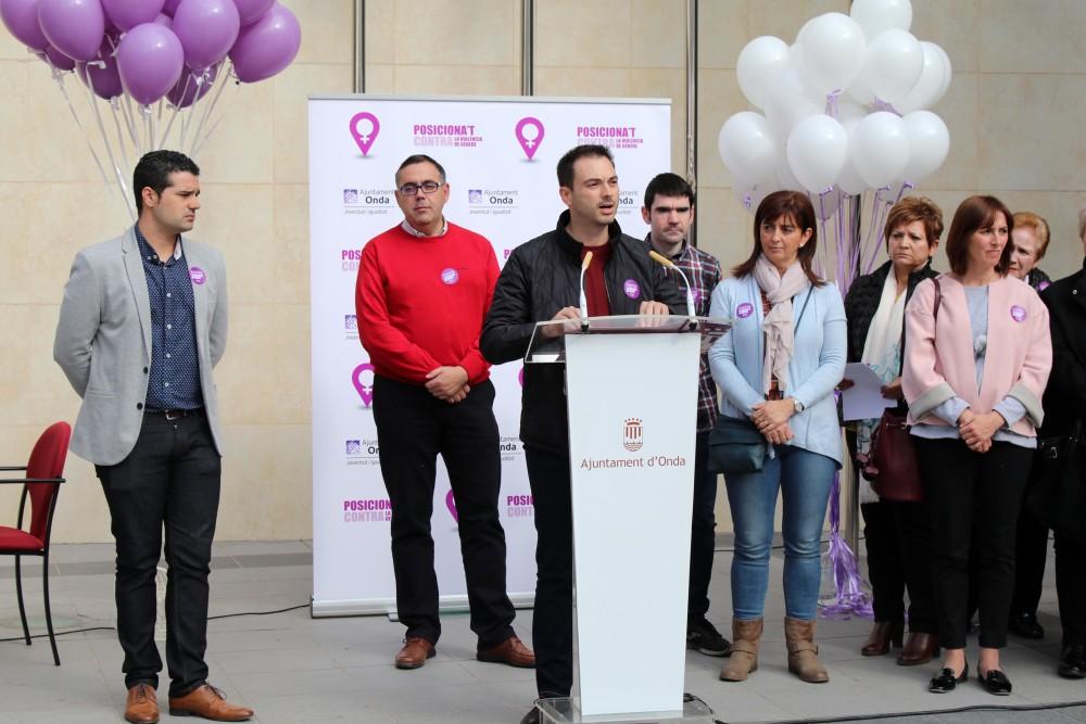 Avui, a les 12 hores, davant de les portes del consistori, s'ha celebrat un acte institucional on l'alcalde d'Onda, Ximo Huguet, ha llegit un manifest aprovat en l'última sessió plenària. En l'acte també han participat representants de les associacions 'Dones Progressistes' i 'Amas de Casa'. En finalitzar, s'han soltat uns globus, un per cadascuna de les víctimes que han desaparegut enguany a Espanya.