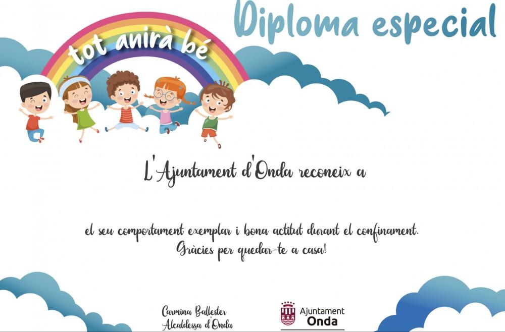 El Ayuntamiento de Onda va a agradecer a 1.010 niños su comportamiento ejemplar durante el confinamiento con la entrega de un diploma especial de reconocimiento.