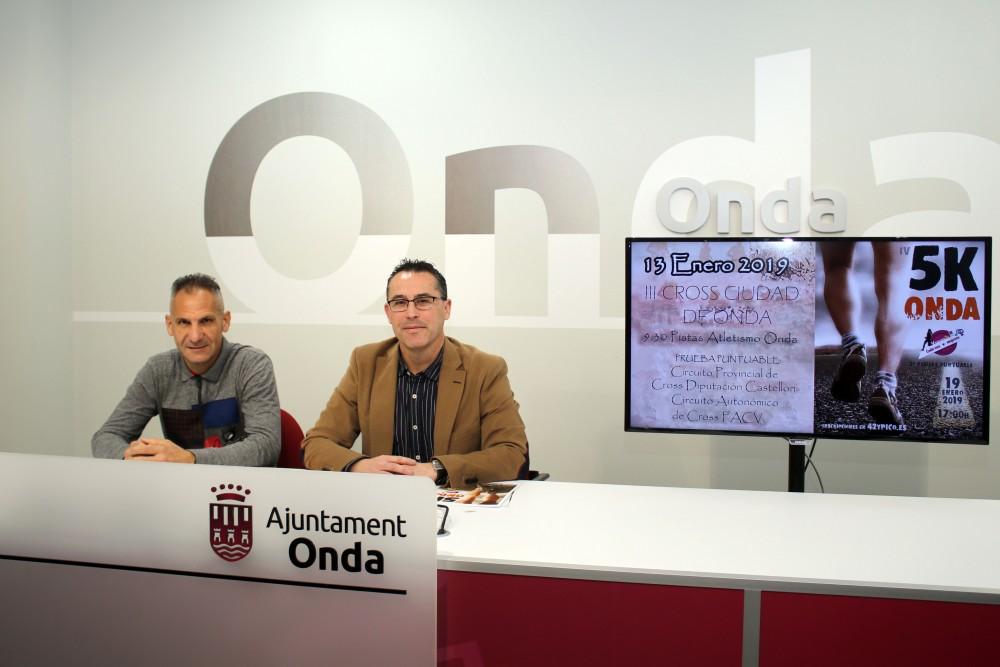 Francisco Chalmeta, regidor d'Esports de l'Ajuntament d'Onda, juntament amb Andrés Tomasseti, secretari del Club d'Atletisme Onda, han presentat hui l'III Cross Ciutat Onda, que se celebrarà el 13 de gener, i la quarta edició del 5K del circuit ‘Cada vez más mujeres’, que tindrà lloc el dia 19 de gener.