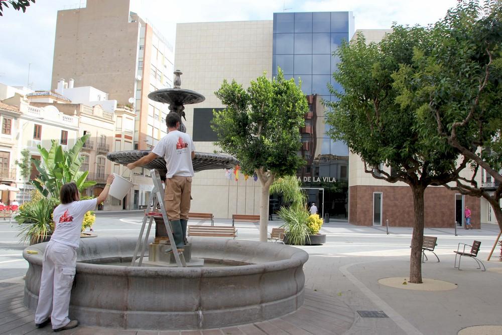 La concejala de Urbanismo, Marta Piquer, ha informado que los operarios de la empresa que realiza el mantenimiento de la fuente están en estos momentos buscando una posible fuga que podía ser la causante de la oxidación de la fuente, "que presenta un aspecto deplorable tan sólo unos meses después de su restauración".