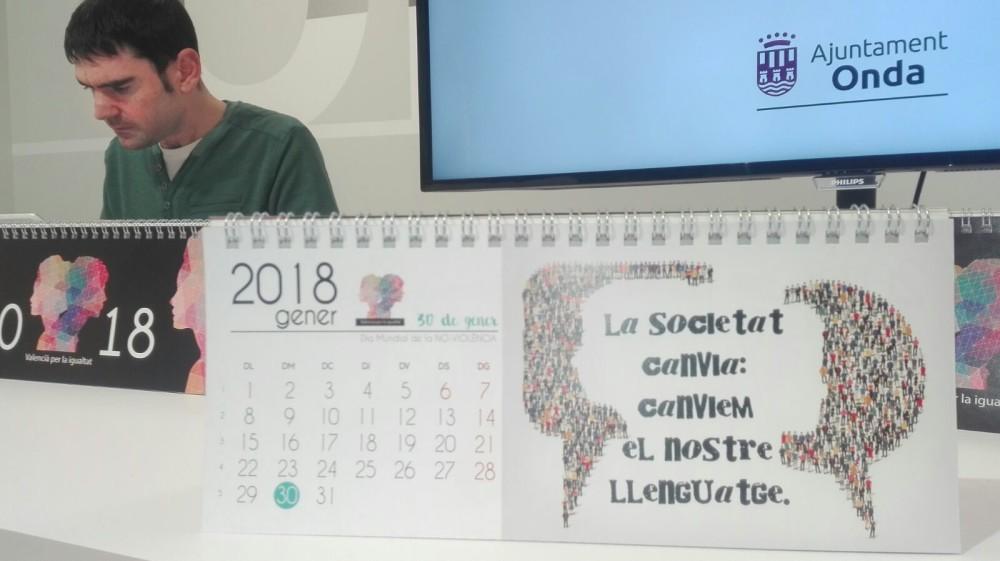 Onda ha presentat avui el calendari Valencià per la igualtat. El Regidor de Cultura i Normalització Lingüística Lluís Pastor ha destacat el mal ús que és fa de la llengua "i per això hem de fer un ús correcte de la mateixa per tal d'engegar una llengua igualitària, culta i inclusiva".