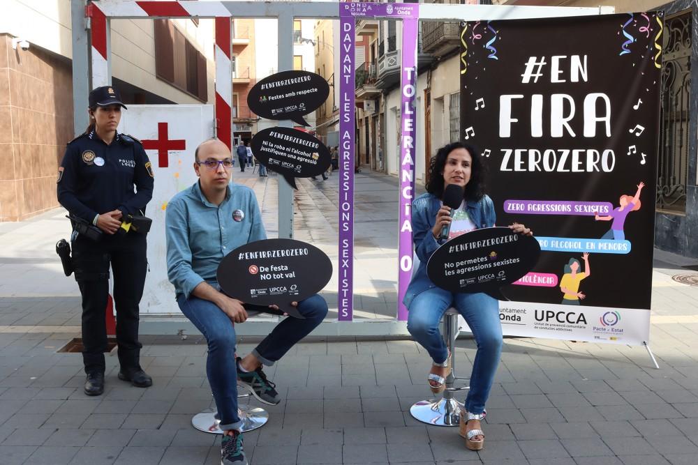 El Ayuntamiento de Onda, a través de las áreas de Igualdad, Seguridad Ciudadana y Bienestar Social, ha presentado esta mañana la campaña #EnFiraZeroZero que persigue el objetivo de concienciar a los ondenses y visitantes, especialmente entre los jóvenes, sobre la violencia de género y el consumo responsable de alcohol durante la semana de fiestas patronales.