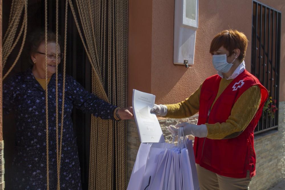 Los voluntarios de Cruz Roja han sido los encargados de repartir puerta a puerta un completo bloc de actividades que contiene ejercicios matemáticos de suma, resta, repaso de figuras, pintura de mandalas y de repaso léxico y sintáctico.