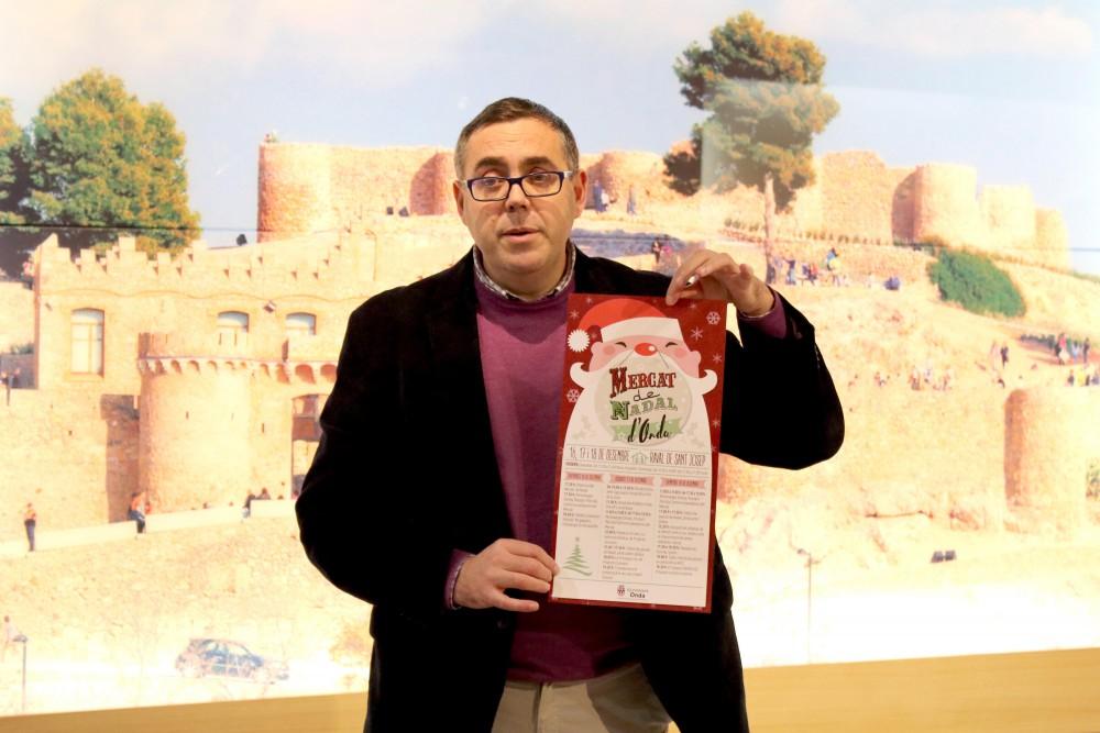 Del 16 al 18 de diciembre, los ondenses y los vecinos de otras poblaciones tienen una cita con la Navidad en Onda. Con una nueva edición del 'Mercat de Nadal', el Ayuntamiento ha querido animar a los ciudadanos a "dinamizar" la economía local gracias a esta iniciativa que hace del centro de la ciudad un lugar "más atractivo y familiar". Así lo ha anunciado esta mañana ante los medios de comunicación el teniente de alcalde de Dinamización Económica del Ayuntamiento de Onda, Ángel Badenas, quien ha presentado el programa de actividades que se desarrollarán ese fin de semana y que se suman al completo programa de actos culturales que ha organizado el consistorio para los meses de diciembre y enero, y que incluye musicales, conciertos, cuentacuentos, exposiciones o cine de estreno.
