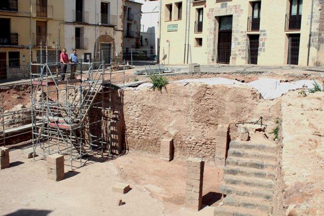 Cal recordar que la reforma de la plaça, que havia de realitzar-se després de les excavacions inicials, va quedar paralitzada per aquestes troballes arqueològiques. Després de rebre l'autorització de la Direcció territorial de Cultura i Patrimoni es van reprendre els treballs i es va haver d'ampliar el sector excavat per a exhumar tot el gran edifici documentat en la plaça, impedint el tràfic dels vehicles i, en aquests moments, s'està procedint a la reforma del mur que consolida al col·lector trobat al costat de la resta de troballes arqueològic. En aquest sentit, l'alcalde ha destacat que “el consistori va adoptar una sèrie de mesures d'urgència, seguint amb les indicacions de Conselleria, després de l'aparició en la plaça d'una enorme construcció que podria correspondre a una cisterna monumental de grans dimensions”.