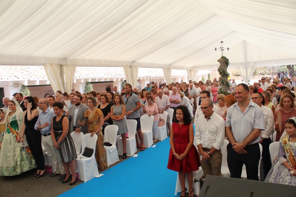 La misa de las 12 horas en El Salvador, que por primera vez se ha oficiado en el exterior de la ermita, ha reunido a centenares de devotos que han querido honrar al Patrón en el día grande de Onda. El Ayuntamiento ha habilitado una carpa con sillas y ventiladores con el fin de ampliar el aforo hasta las 300 personas sentadas, en vez de las 60 que caben en el interior de la Iglesia y que siempre se desbordaba.