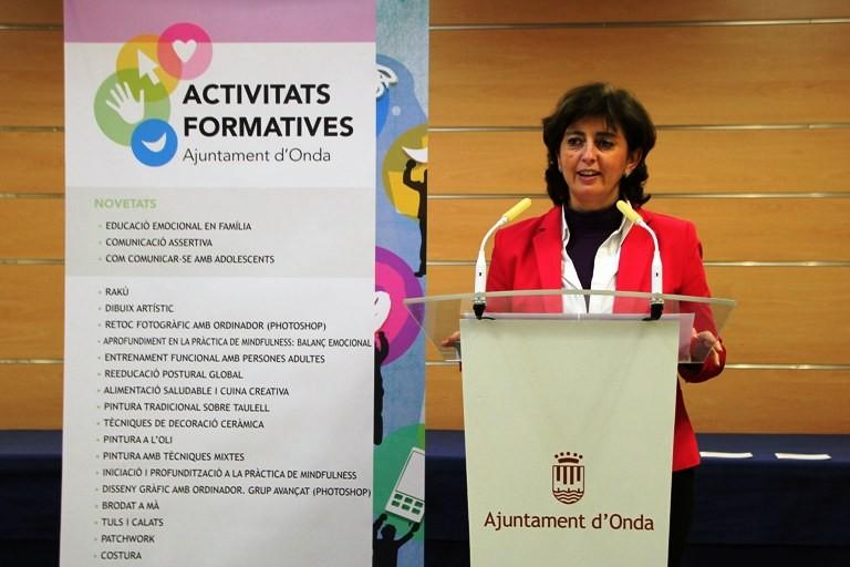 La concejala de educación del Ayuntamiento de Onda, Encarna Ribes, ha presentado esta mañana la nueva oferta de actividades formativas para el segundo cuatrimestre del curso 2015/2016. Se trata de una programación completa que el Ayuntamiento ofrece a los vecinos del municipio como instrumento para "lograr la realización personal, el bienestar individual y colectivo y alcanzar los retos personales".