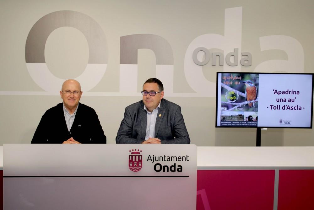 L'Ajuntament d'Onda, a través de l'àrea de Sostenibilitat i Dinamització Econòmica que dirigeix el tinent d'alcalde Ángel Badenas, ha presentat avui la iniciativa ‘Apadrina una au’ amb l'objectiu de posar en valor el paratge natural del Toll d’Ascla a través d'una nova col·laboració amb l'associació local Grup Au d’Ornitologia. En aquest sentit, Badenas ha assenyalat que “l'equip de govern que lidera l'alcalde Ximo Huguet sempre ha mostrat la seva preocupació per defensar el patrimoni d'Onda, tant monumental com a mediambiental. És per açò que, tornem a unir esforços amb el Grup Au amb la finalitat de conèixer per a conservar els paratges naturals que ens envolten i, alhora, sumar un nou atractiu turístic per a la ciutat”.