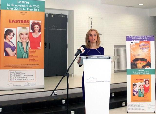 El municipio de Onda ha presentado hoy la oferta cultural de primer nivel que se podrá disfrutar en la localidad durante este mes de Noviembre. María Dolores Feliu, la teniente de alcalde de Cultura, explica que se trata de “actividades culturales dirigidas todos los públicos, con teatro y cine familiar, y una comedia con artistas de primer nivel” que se realizarán en el reformado teatro Mónaco.