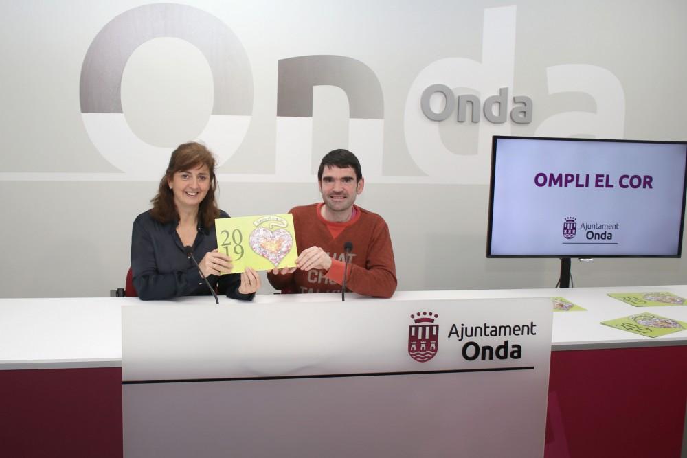L'Ajuntament d'Onda s'ha sumat a la campanya 'Ompli el cor' per a conscienciar i informar sobre la importància de portar una vida activa i saludable, no solament en el pla físic, si no també en el mental i en l'emocional. El tinent d'alcalde de Cultura i Dinamització Lingüística, Lluís Pastor, i la tinent alcalde de Serveis a la Ciutadania, Encarna Ribes, han presentat aquesta campanya conjunta que està especialment dirigida fonamentalment a les persones majors. Pastor ha explicat que “hem editat un calendari emocional en valencià que proporciona pautes saludables i ajuda a adquirir hàbits per a millorar la salut en tots els àmbits. Es tracta de millorar la qualitat de vida de les persones que més ho necessiten, en aquest cas el sector de la població de la tercera edat, facilitant que tinguen al seu abast recursos per a fer el seu dia a dia més fàcil”.