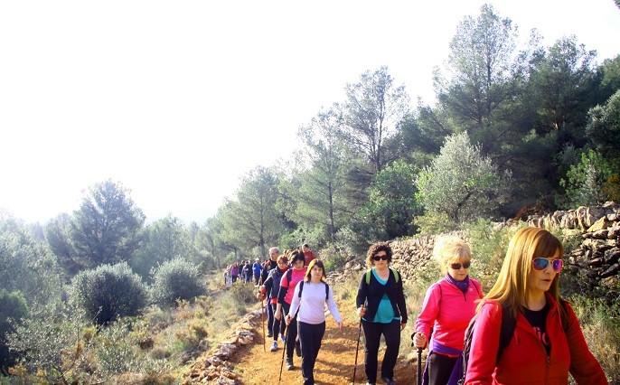 La ruta ha dado comienzo en la Font de Dins y desde allí los senderistas se han dirigido al río Sonella, atravesando el puente medieval a los pies de las montañas del Montí. Entre bosques de pinos y rodeados de impresionantes parajes esta ruta, titulada 'La senda de l'aigua' permite a los visitantes descubrir sensaciones nuevas. La ruta ha seguido hasta 'Les Coves Gelades', unas pequeñas cuevas situadas al margen de la montaña y junto a una acequia que va en paralelo a la senda varios metros.