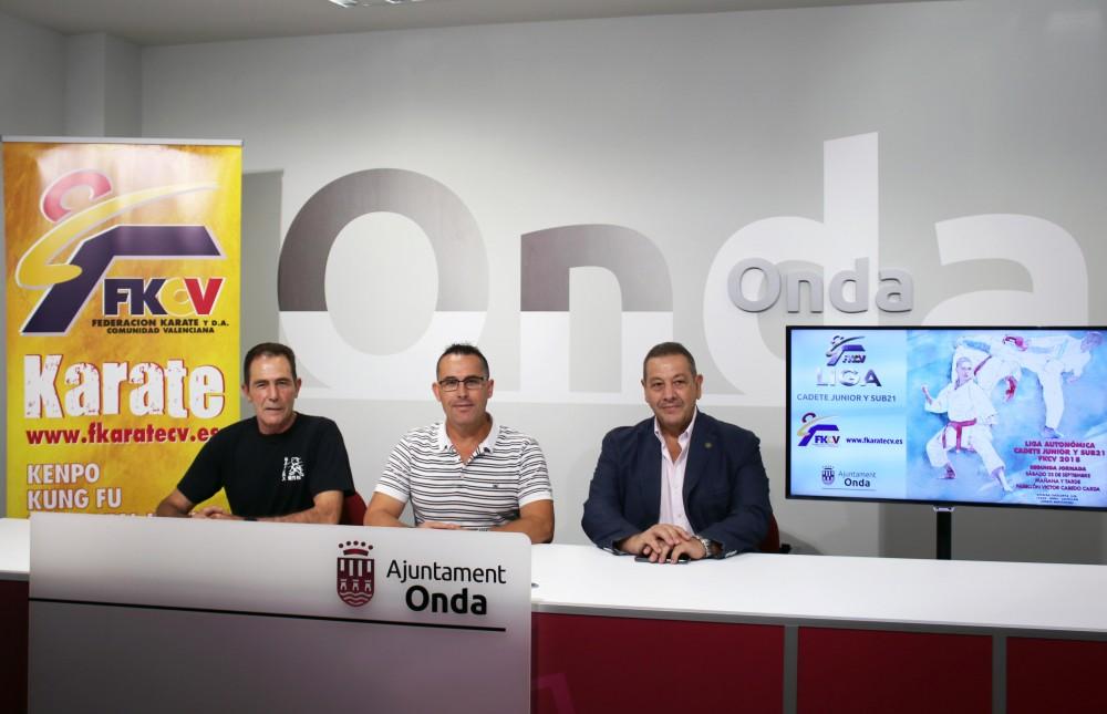 El regidor d'Esports de l'Ajuntament d'Onda, Francisco Chalmeta, ha presentat aquest matí al costat de Miguel Ángel Gómez, president de la Federació Valenciana de Karate; i Leovigildo Martín, gerent del gimnàs Sakura d'Onda; la segona jornada de la Lliga Autonòmica de Karate. Tindrà lloc durant tot aquest dissabte, 22 de setembre, al pavelló Víctor Cabedo, convertint a Onda en seu autonòmica en les categories de Cadet, Junior i Sub 21.