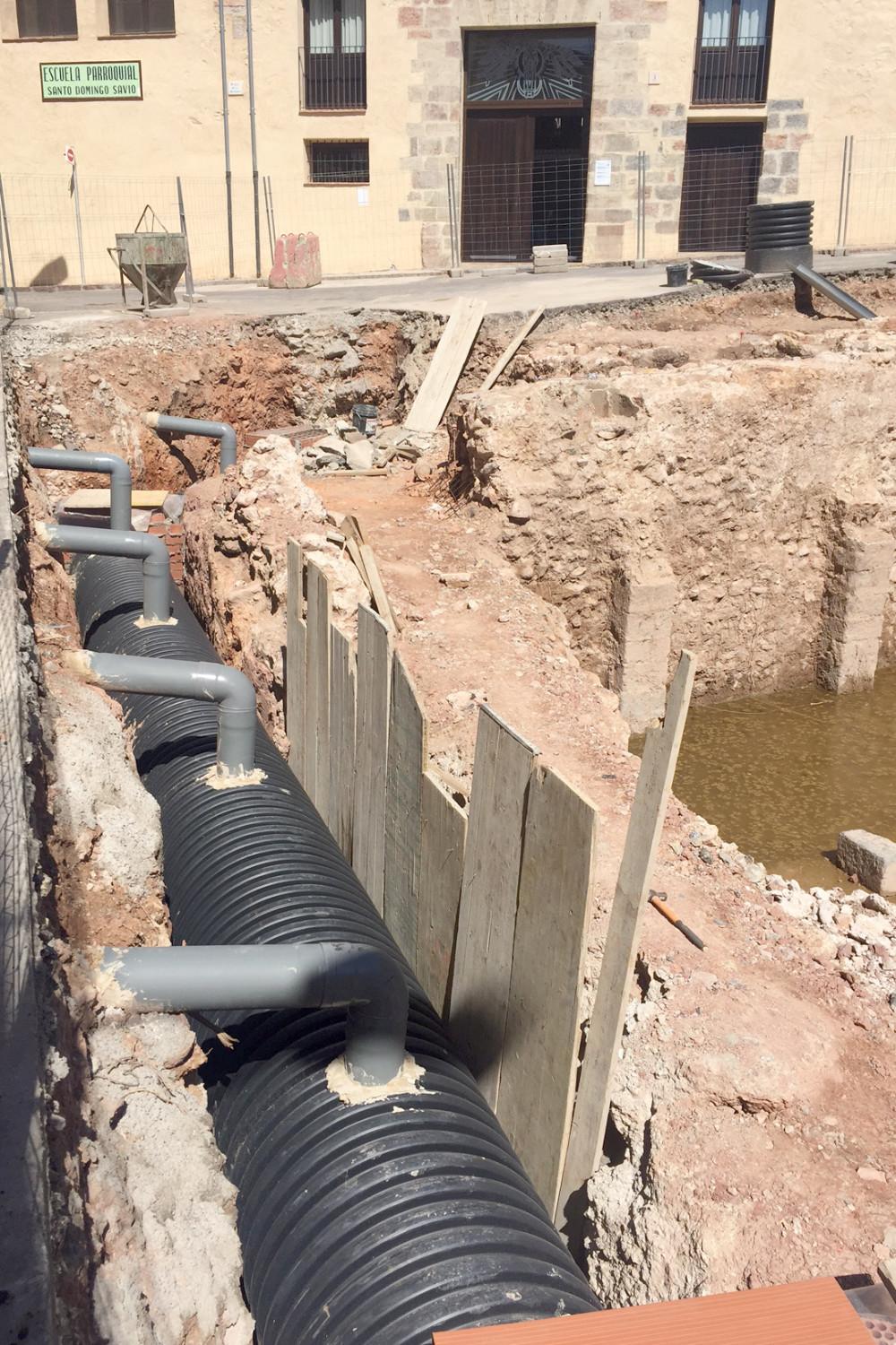 La reforma de la plaça, que havia de realitzar-se després de les excavacions inicials, va quedar paralitzada per aquestes troballes arqueològiques. Després de rebre l'autorització de la Direcció territorial de Cultura i Patrimoni es van reprendre els treballs i es va haver d'ampliar el sector excavat per exhumar tot el gran edifici documentat a la plaça, impedint el tràfic dels vehicles. També es va trobar un col·lector, el qual s'ha desviat per deixar tot el recinte excavat lliure d'instal·lacions i es reconstruirà la part del mur de la cisterna que havia estat destruït per passar el col·lector. Així mateix, es realitzaran treballs de consolidació de la part superior dels murs de la cisterna per evitar la seva deterioració. En aquesta línia, l'alcalde Ximo Huguet ha anunciat que “una vegada es consolidi, s'estudiarà la possibilitat de barrar la cisterna, tal com ha aconsellat la Conselleria, per després procedir a la reurbanització de la plaça”.