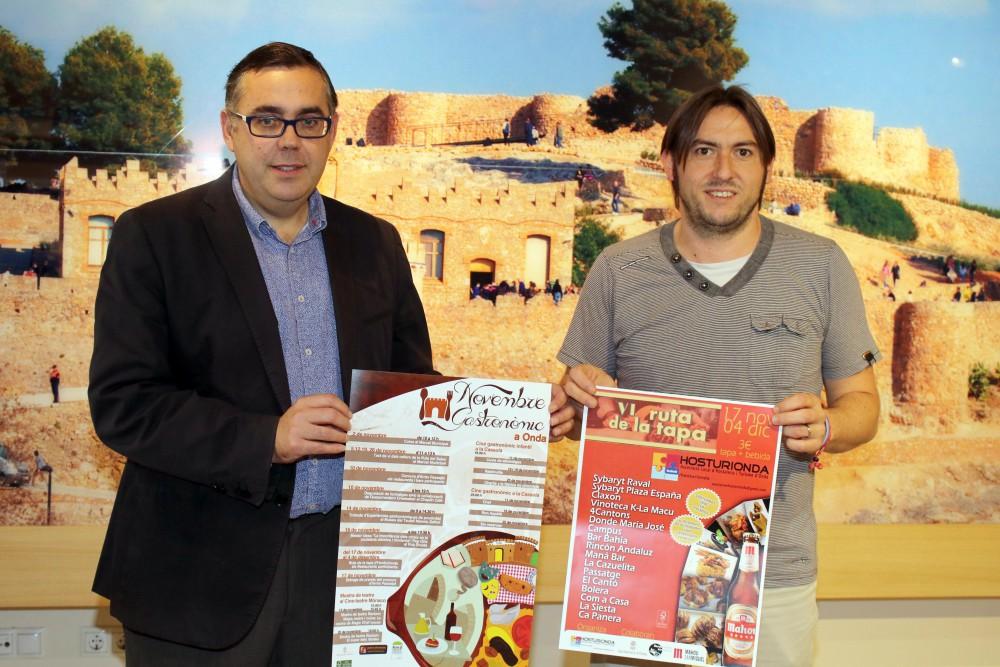 El teniente de alcalde de Dinamización Económica del Ayuntamiento de Onda, Ángel Badenas, ha presentado esta mañana junto a un representante de Hosturionda, Manuel Llorens, el novedoso programa que han elaborado conjuntamente para dinamizar el turismo en la localidad durante todo el mes de noviembre.