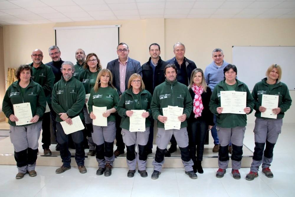 El Taller d'Ocupació Onda VI sobre agricultura ecològica i activitats auxiliars en agricultura, que finalitza avui, ha comptat amb 10 onders que han pogut millorar la seua qualificació i inserció en el món laboral. L'alcalde d'Onda, Ximo Huguet, el tinent d'alcalde de Dinamització Econòmica, Ángel Badenas i el director territorial d'Ocupació, José Vicente Andrés, han acudit a l'acte de clausura del curs.