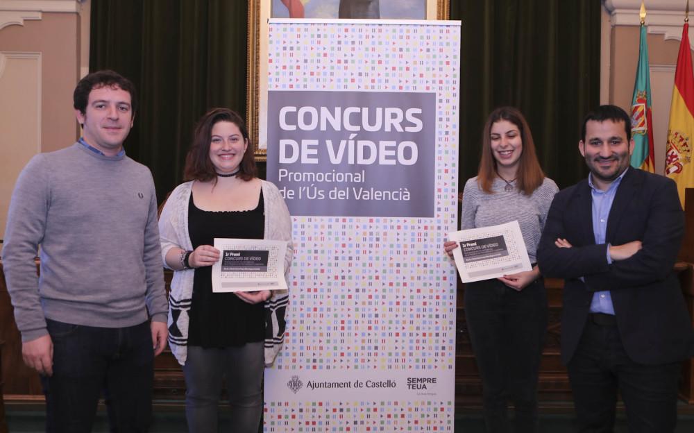 El conseller d'Educació, Investigació, Cultura i Esports, Vicent Marzà, i el regidor de Normalització Lingüística de l'Ajuntament de Castelló, Ignasi Garcia, han entregat aquest matí el premi del concurs de vídeo per promocionar el valencià com a llengua normal d'ús. Les guanyadores han estat les alumnes de Periodisme de la Universitat Jaume I, Oreto Soria Puig i Alba Segura Antolín, amb 'Ella'.
