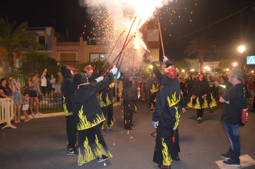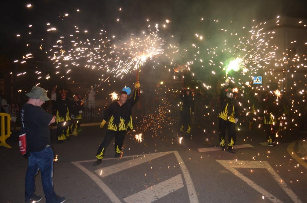Cientos de personas, entre vecinos y veraneantes, se agolparon en el recorrido para vivir este mágico espectáculo, que desfiló por las calles Ríos Portilla, Sánchez Pastor, Doctor Fleming y la plaza Mayor, antes de culminar el trayecto. Pequeños y mayores se acercaron hasta los 'dimonis' para bailar en un día de lo más festivo.