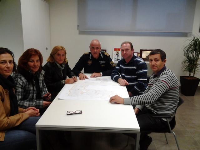 El concejal delegado de Vías Públicas de Oropesa, Dimas Albert, y el Intendente-Jefe de la Policía Local, Clemente Rodrigo, junto con el representante de la empresa adjudicataria del servicio de señalización viaria, se reunieron este jueves 20 de marzo con la presidenta de la Asociación de Vecinos de "El Balcó", Inmaculada Garrido, y dos componentes de la Junta Directiva de la asociación, con la finalidad de darles a conocer el Proyecto de Circulación y Señalización Vial para las calles de la urbanización del municipio.