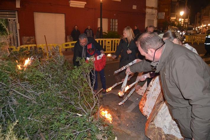 El alcalde, Rafael Albert, acompañado por los concejales Dimas Albert y Sonia Bellés, y por la reina de las fiestas y sus damas, ha sido el encargado de iniciar la cremà de la hoguera, al mismo tiempo que los vecinos daban inicio a las suyas en las calles de la localidad.
