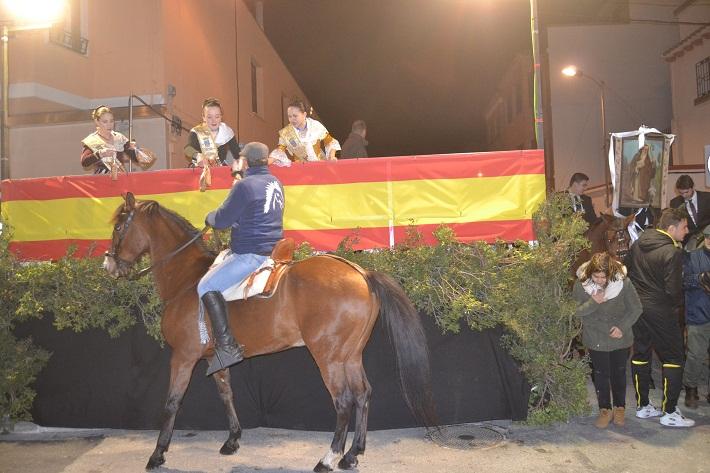 Tras esta ceremonia, tuvo lugar el reparto de las tradicionales ‘coquetes’ por parte de las representantes festivas, que las distribuyeron primero entre las carrozas y los caballistas que se acercaban hasta la plataforma en la que estaban situadas. Después llegó el turno de las personas que se disfrazaron y, por último, del resto de vecinos, que acudieron en masa a disfrutar de esta tradicional cita festiva.