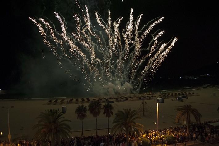 Un año más el Ayuntamiento de Oropesa del Mar ha rendido homenaje al turista con un espectacular castillo de fuegos artificiales en la Playa de La Concha. Miles de curiosos se agolpaban en el paseo para dejarse sorprender por la Pirotecnia Tomás de Benicarló, que esta vez ha querido dar una grata sorpresa ofreciendo a los sentidos de la vista y el oído sendas sorpresas.