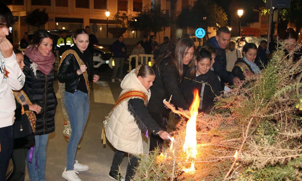 Una vez en la plaza Mayor, el grupo local de danza ha desplegado un colorido espectáculo en el que el folclore valenciano ha sido el auténtico protagonista. Y ya bien entrada la noche, el fuego ha conquistado la céntrica plaza en la mágica Cremà en la que se ha procedido al encendido de la hoguera del ayuntamiento.