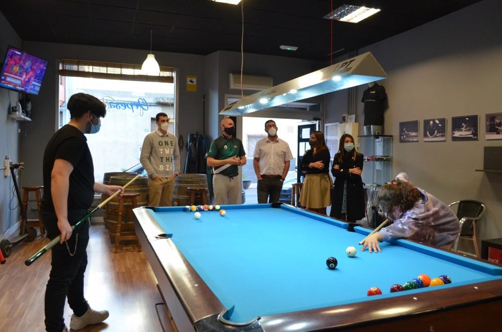 La alcaldesa de Oropesa del Mar, María Jiménez, junto al concejal de Deportes, Jordi Llopis, y la edila de Juventud, Jennifer Casañ, han visitado la sede del club de billar Orpesa Pool, ubicado en la calle Francisco Sevillano del municipio, una asociación fundada hace ahora cuatro años. Desde entonces, la entidad que preside Steve Boyle promueve entre los más jóvenes la práctica de este deporte para transmitirles valores como el respeto y la responsabilidad.
