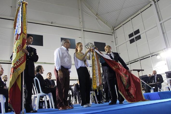 El acto ha finalizado con la entrega de corbatines para los estandartes de las respectivas bandas de música, que han sido entregados de manos del alcalde de Oropesa del Mar, Rafael Albert, y de la reina de las fiestas, Rebeca Casañ. Acto seguido se ha escuchado el himno de la Comunidad Valenciana.