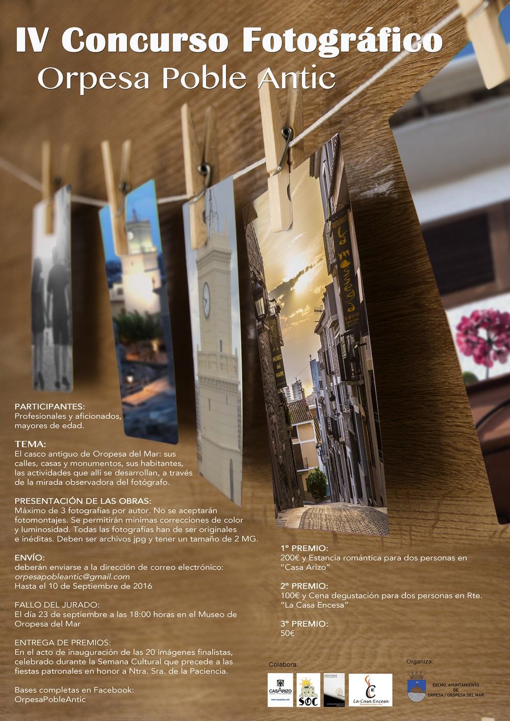 El Ayuntamiento de Oropesa del Mar, a través de la Concejalía de Cultura y con la colaboración de la Societat Orpesina de Cultura, convoca el IV Concurso fotográfico 'Orpesa poble antic'.