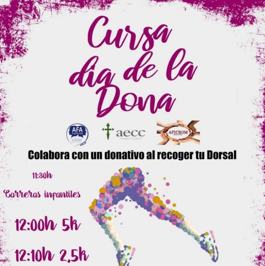 Será el 8 de marzo, Día Internacional de la Mujer, cuando el municipio acoja a las 12.00 horas la Cursa de la Dona, que este año contará con dos modalidades: la competitiva que puntúa para el Circuito Local de Carreras Populares (de cinco kilómetros) y la no competitiva (de 2,5 kilómetros), a la que se sumarán niños y niñas mayores de 11 años, jóvenes y mayores. Además, a las 11.30 horas, se celebrarán las carreras infantiles, en las que los participantes (niños de hasta los 11 años) recibirán sus correspondientes medallas y una bolsa de chucherías.