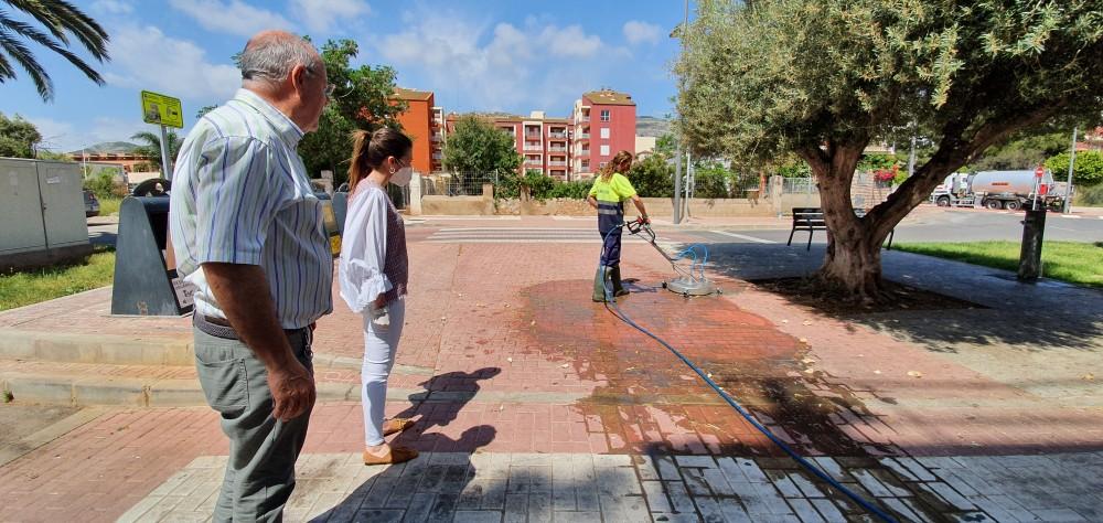 Los trabajos, que han comenzado hoy mismo, “consisten en la limpieza a fondo de aceras mediante agua a presión, y se repetirán todas las mañanas y tardes, también los sábados hasta el mediodía”, según ha asegurado la primera edila. Además, ha señalado que la máquina “pasará por todas las zonas de la localidad, pero se dará prioridad a aquellas que precisan de un mayor adecentamiento”.